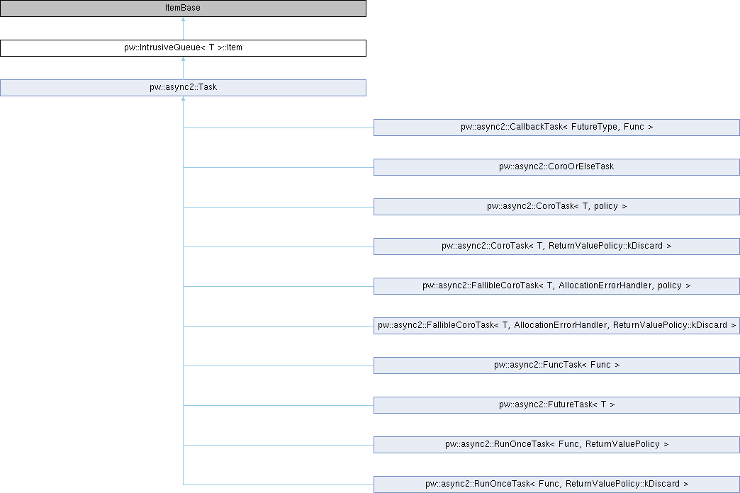 Inheritance diagram for pw::IntrusiveQueue< T >::Item:
