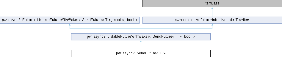Protected Types inherited from pw::async2::ListableFutureWithWaker< SendFuture< T >, bool > | |