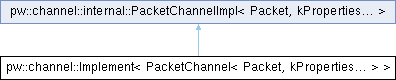 pw::channel::Implement< PacketChannel< Packet, kProperties... > > Class Template Reference